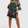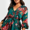 BOOHOO Plus Floral Wrap Belted Dress