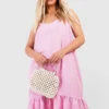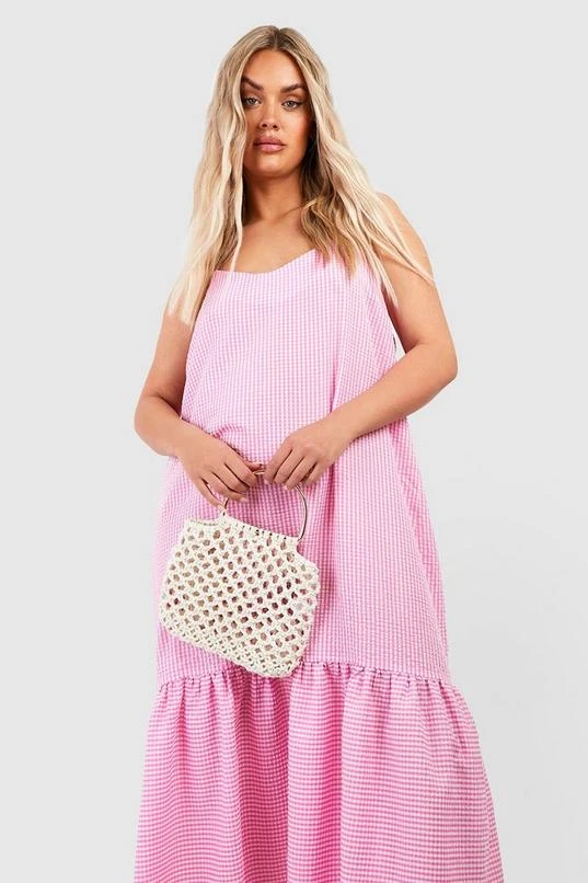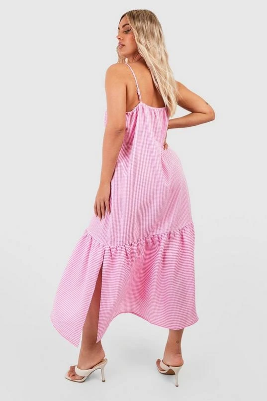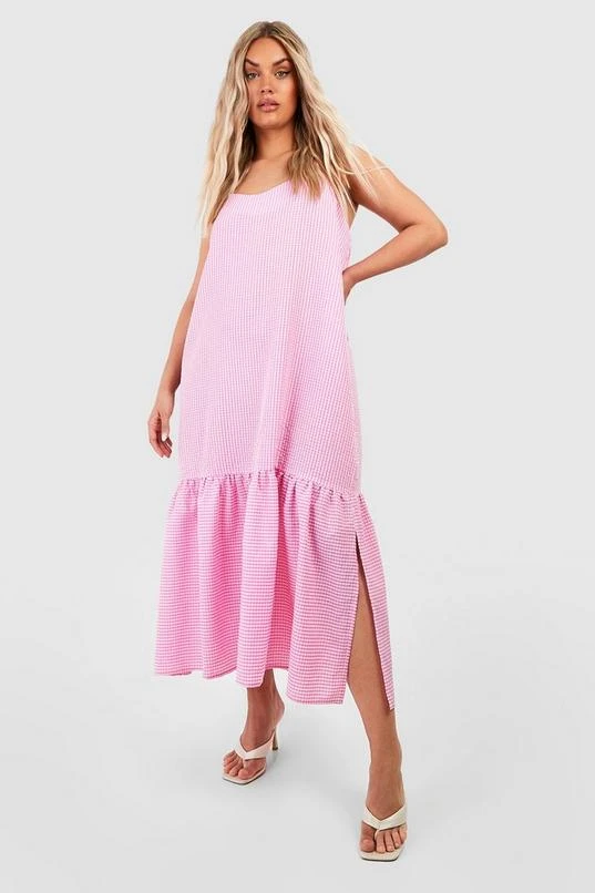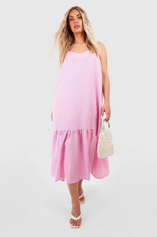 BOOHOO Plus Frill Hem Strappy Gingham Midi Dress