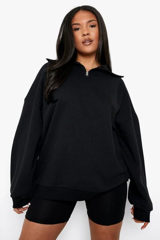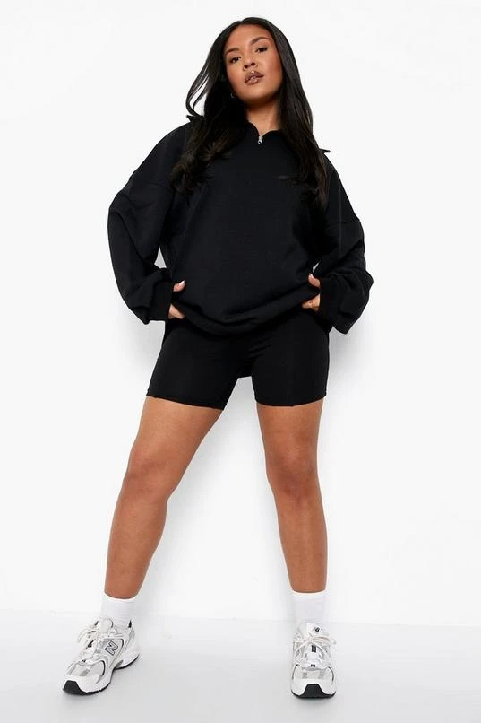 BOOHOO Plus Half Zip Sweat And Biker Short Set