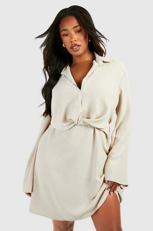 BOOHOO Plus Hammered Twist Front Shift Dress