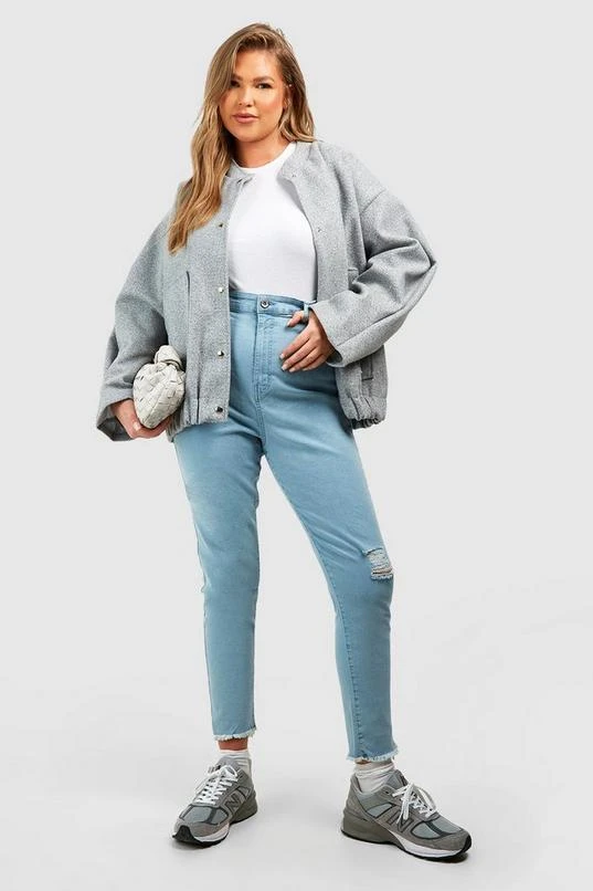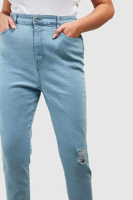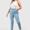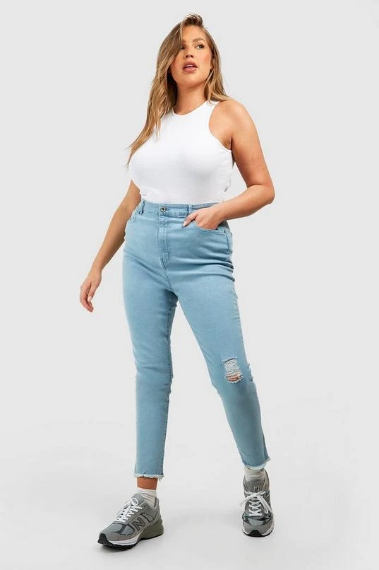 BOOHOO Plus High Waisted Raw Hem Ripped Skinny Jeans