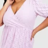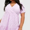 BOOHOO Plus Jersey Knit Eyelet Wrap Tiered Smock Dress