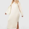 BOOHOO Plus Jersey Knit Half Zip Collar Midiaxi Dress