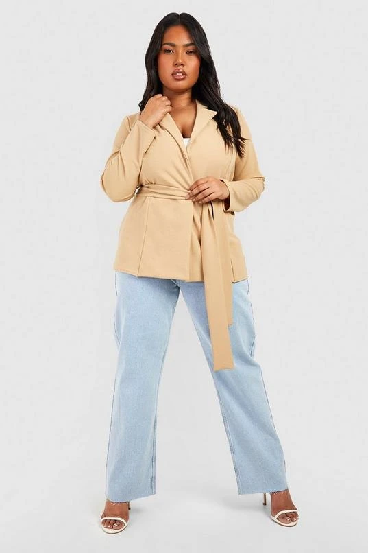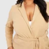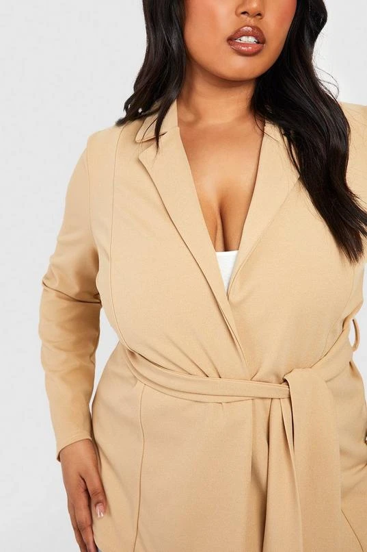 BOOHOO Plus Jersey Knit Obi Tie Waist Fitted Blazer