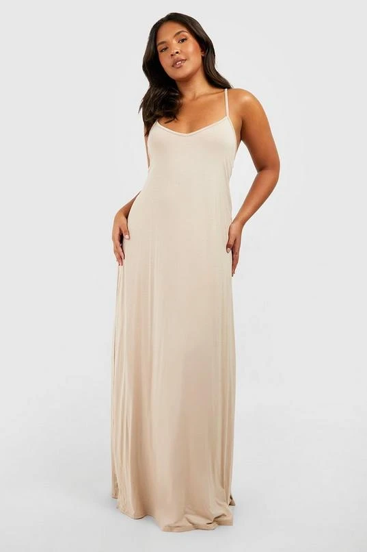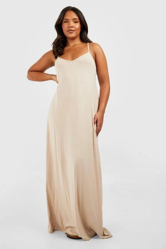 BOOHOO Plus Jersey Knit Strappy V Neck Maxi Dress