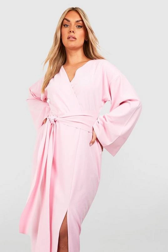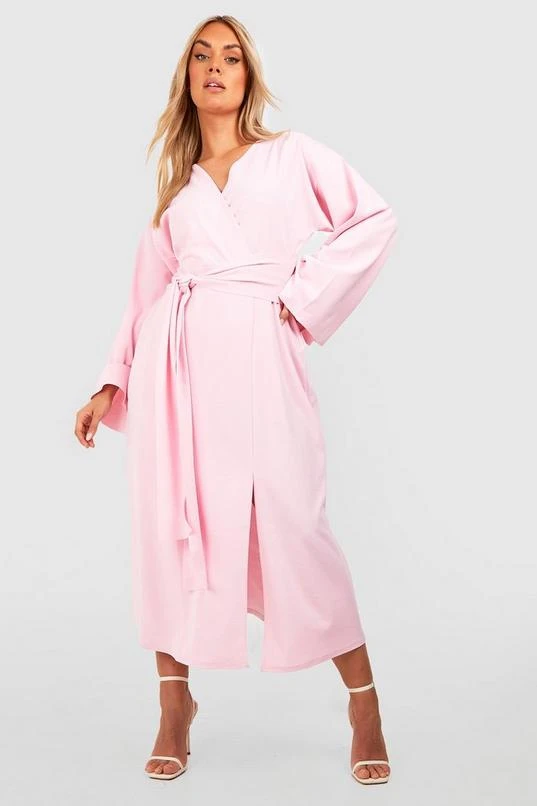 BOOHOO Plus Kimono Sleeve Tie Belt Skater Dress