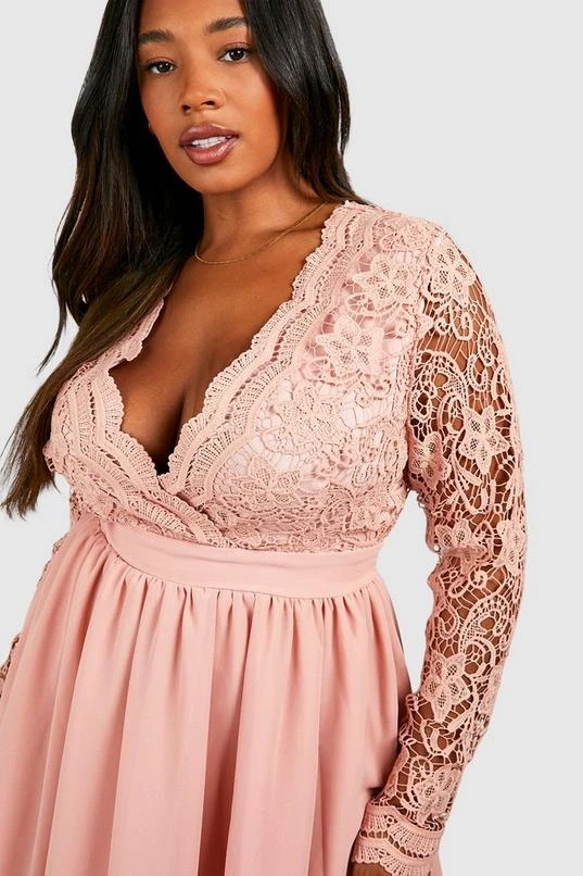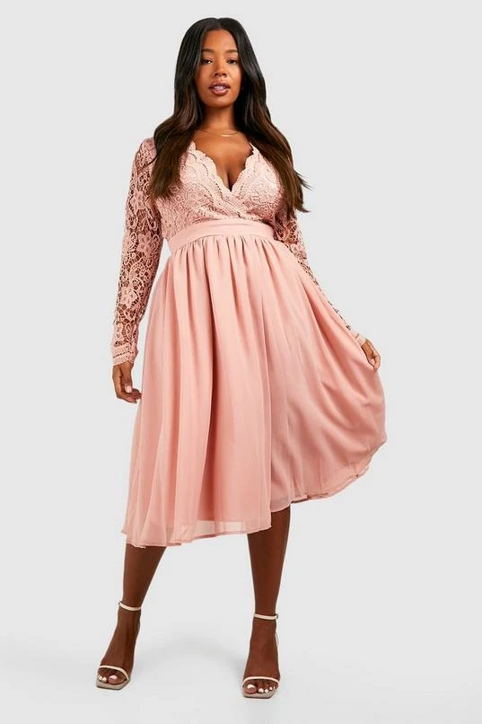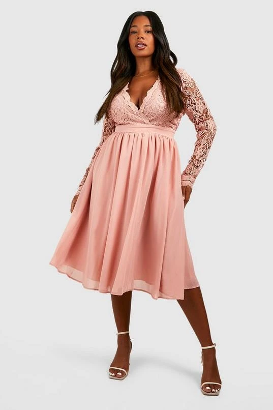 BOOHOO Plus Lace Midi Skater Dress