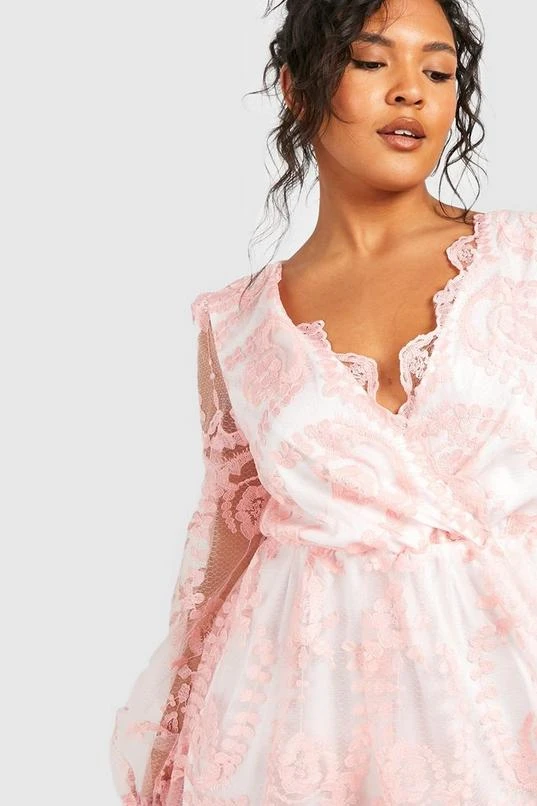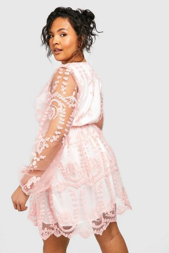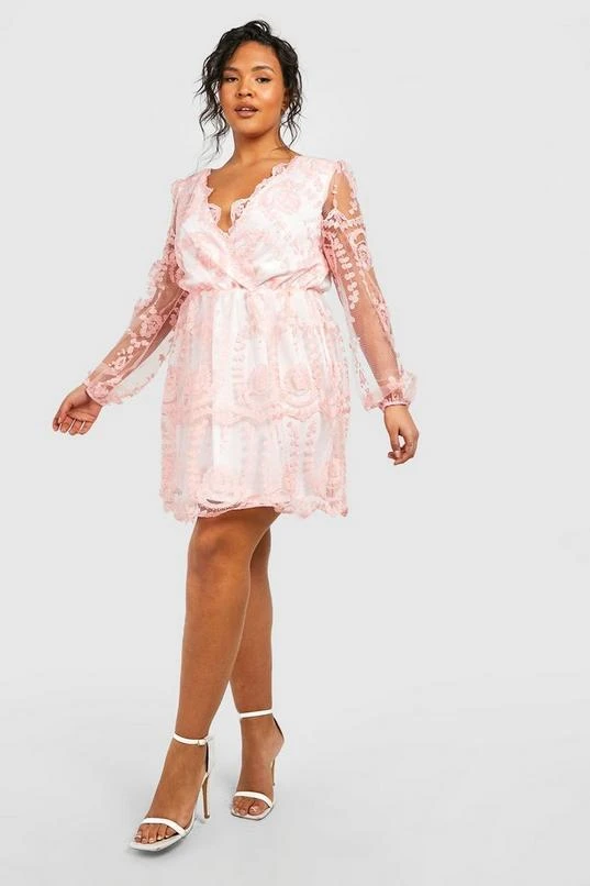 BOOHOO Plus Lace Plunge Skater Dress