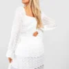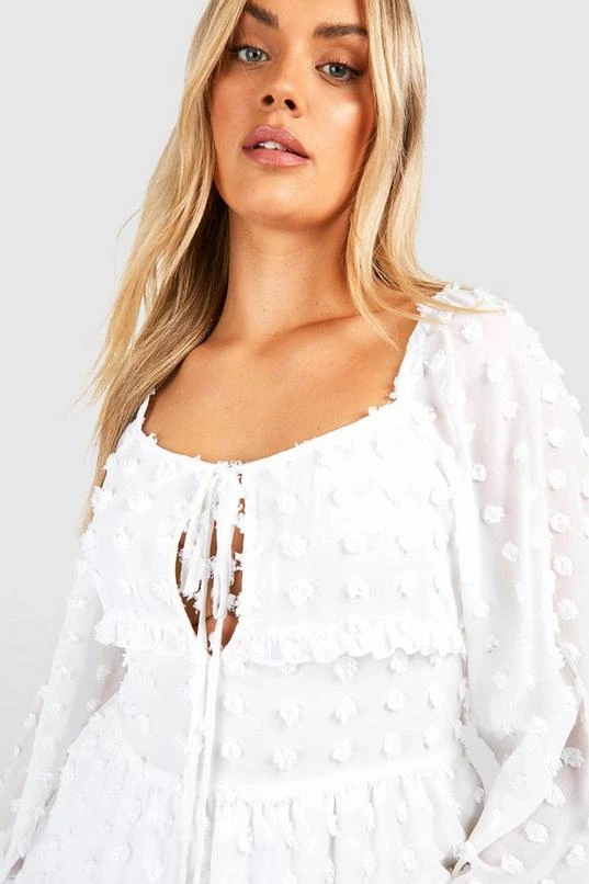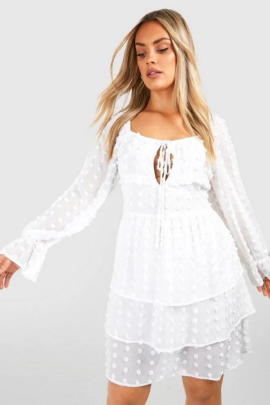 BOOHOO Plus Large Dobby Mesh Tiered Smock Mini Dress