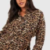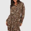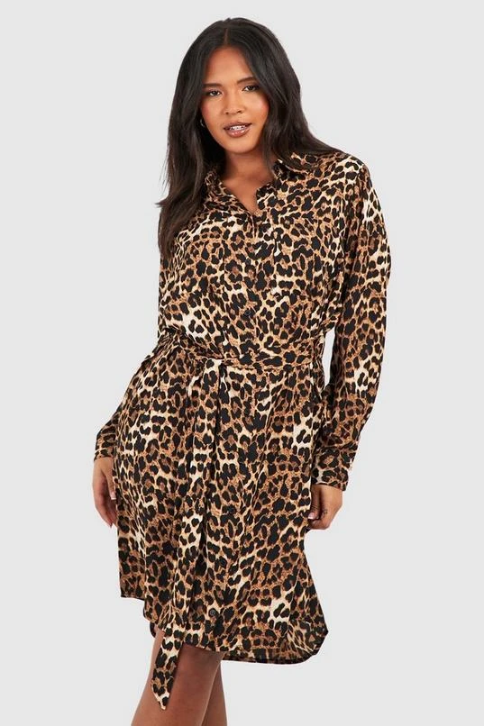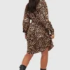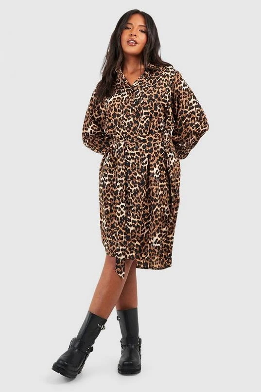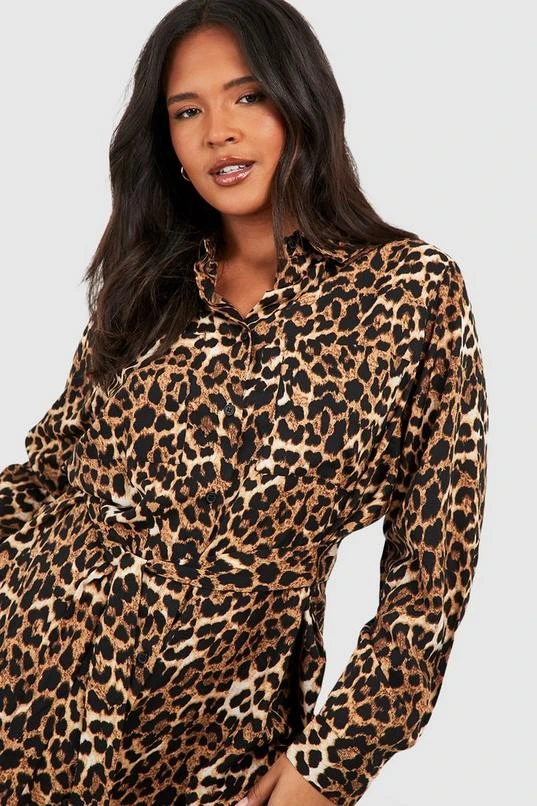 BOOHOO Plus Leopard Batwing Belted Shirt Dress