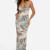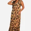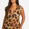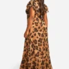 BOOHOO Plus Leopard Chiffon Ruffle Sleeve Maxi Dress