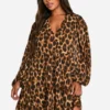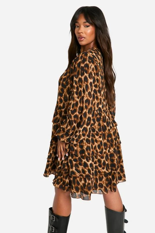 BOOHOO Plus Leopard Chiffon Tiered Frill Skater Dress