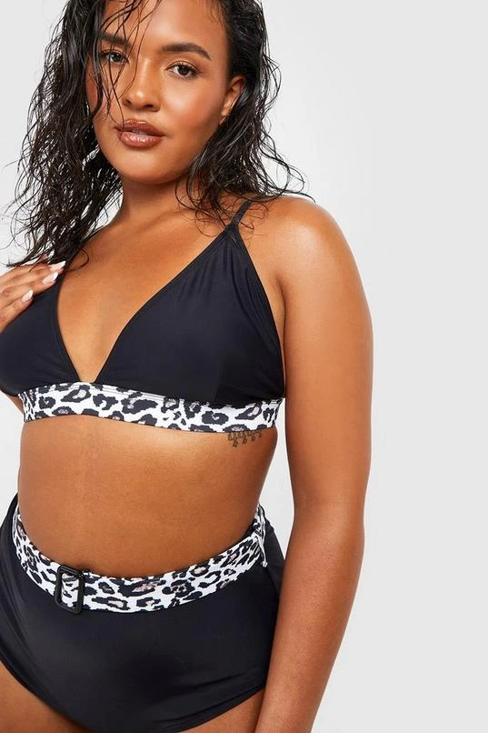 BOOHOO Plus Leopard Contrast Tummy Control Bikini