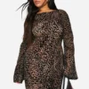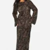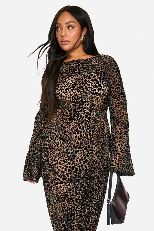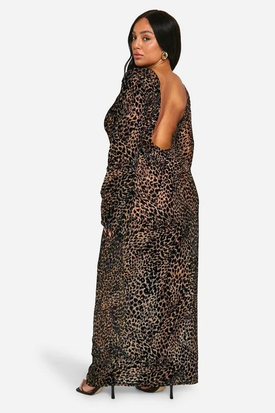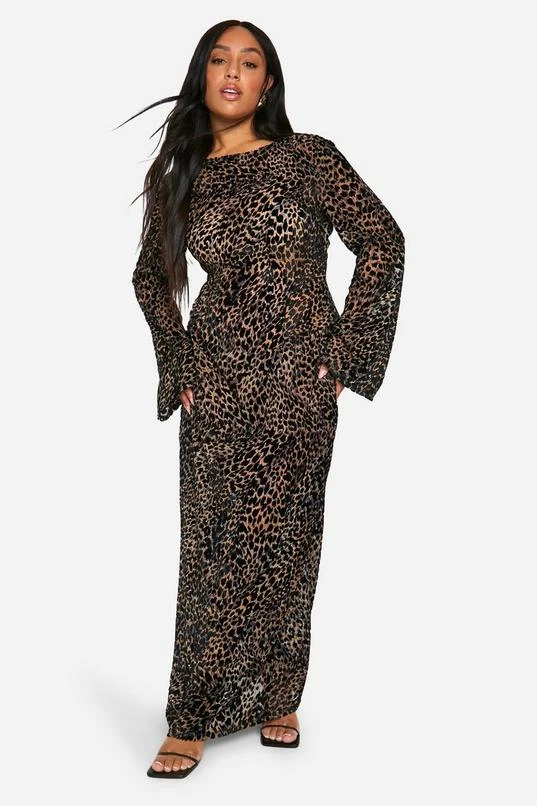 BOOHOO Plus Leopard Devore Low Back Column Maxi Dress