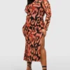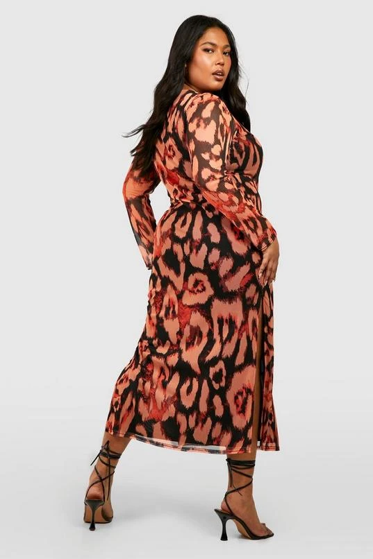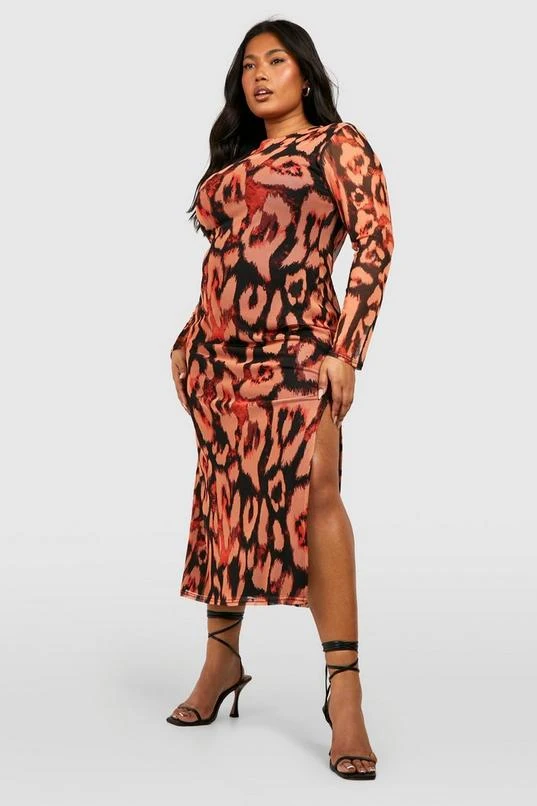 BOOHOO Plus Leopard Mesh Midi Dress