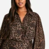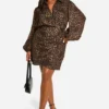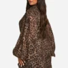 BOOHOO Plus Leopard Print Blouson Sleeve Wrap Dress