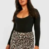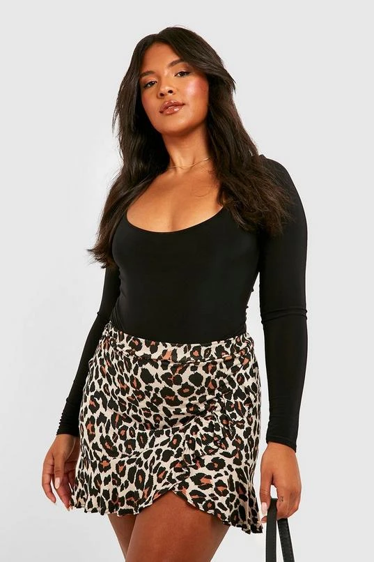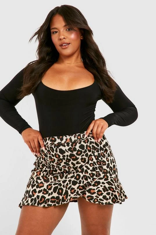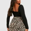 BOOHOO Plus Leopard Print Ruffle Skater Skirt
