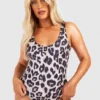 BOOHOO Plus Leopard Print Scoop Neck Swimsuit