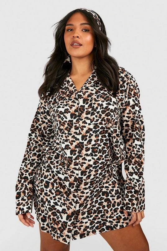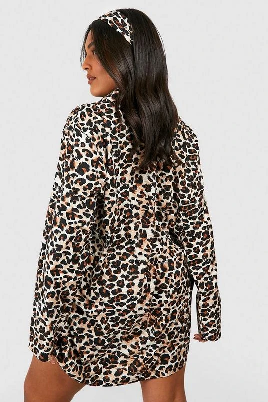 BOOHOO Plus Leopard Print Shirt Dress With Headscarf