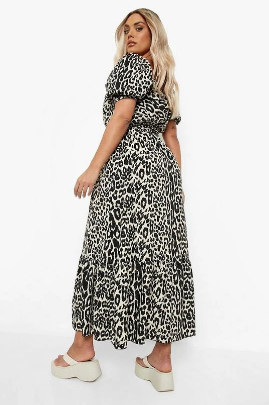 BOOHOO Plus Leopard Print Wrap Midi Dress