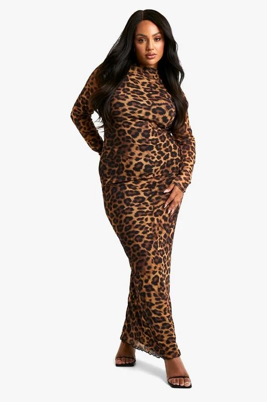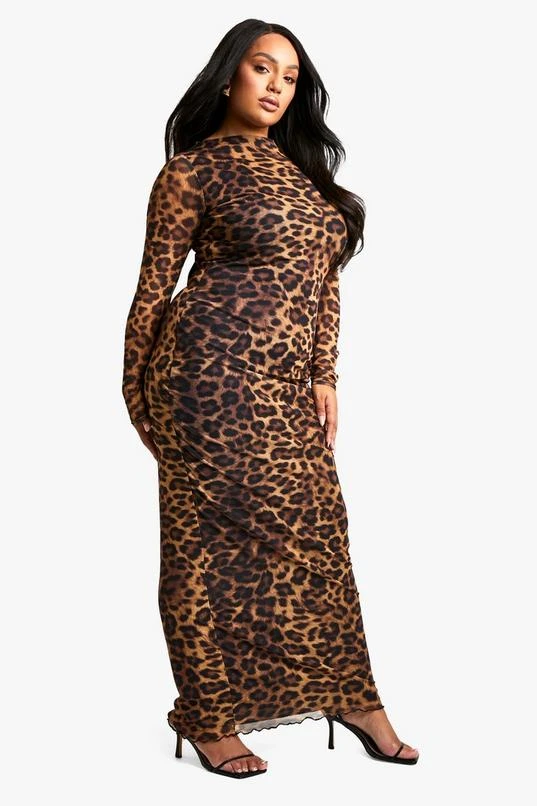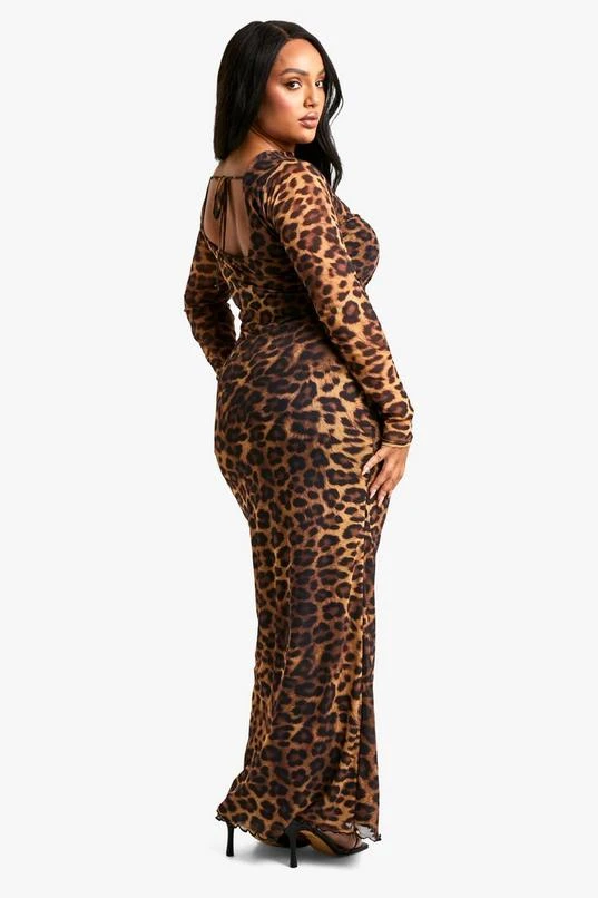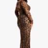 BOOHOO Plus Leopard Printed Backless Long Sleeve Maxi Dress
