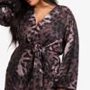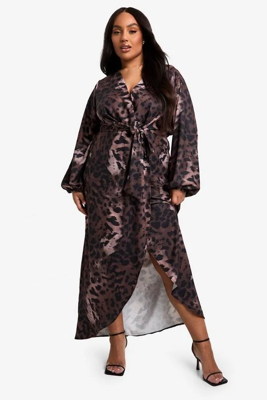 BOOHOO Plus Leopard Tie Detail Maxi Dress