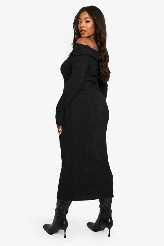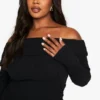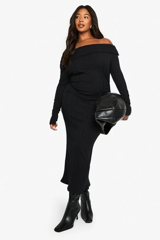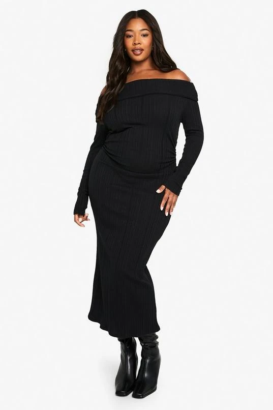 BOOHOO PLUS LONG SLEEVE BARDOT MAXI DRESS