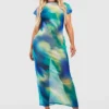 BOOHOO Plus Marble Print Mesh Open Back Mesh Beach Dress