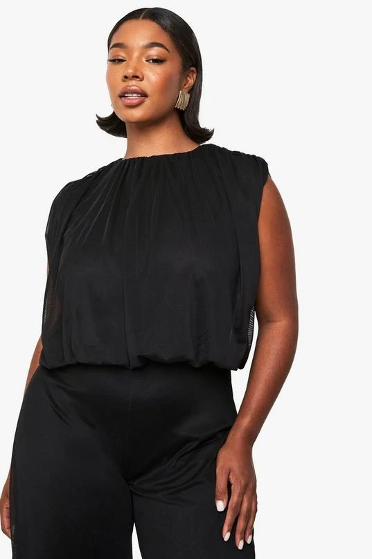 BOOHOO Plus Mesh Blouson Wide Leg Jumpsuit