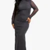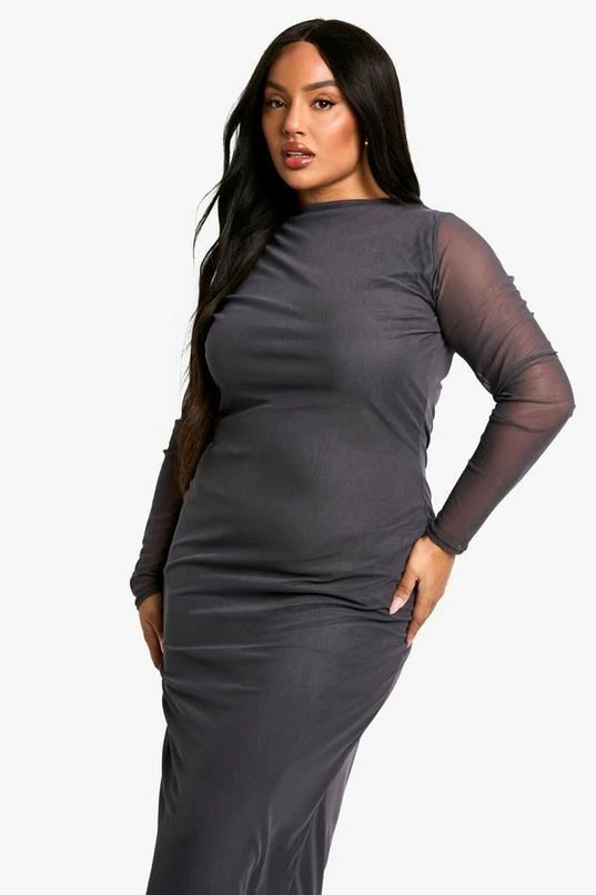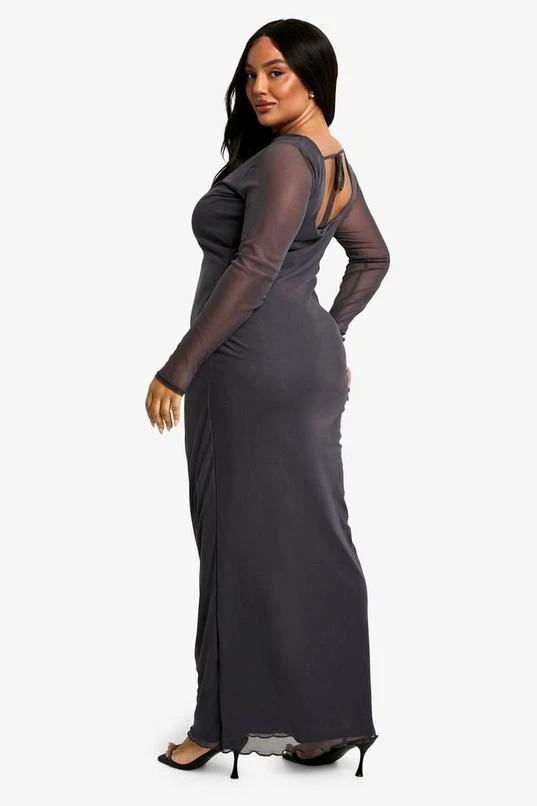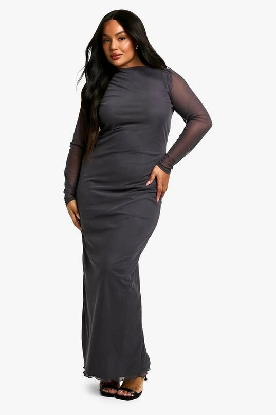 BOOHOO Plus Mesh Long Sleeve Maxi Dress