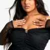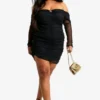 BOOHOO Plus Mesh Off Shoulder Trim Ruched Bodycon Dress