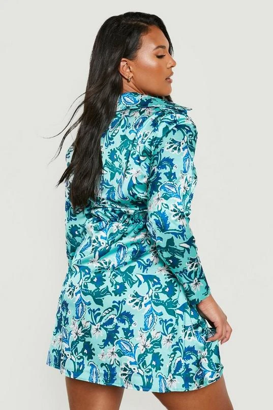 BOOHOO Plus Mix Paisley Tie Waist Shirt Dress