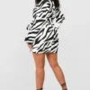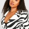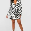 BOOHOO Plus Mono Abstract Print Wrap Blazer Dress