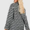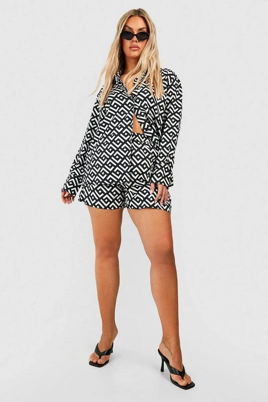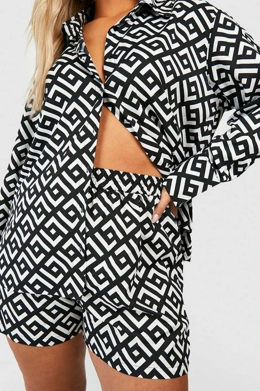 BOOHOO Plus Mono Geo Print Shirt & Shorts Two-Piece Set