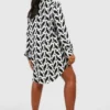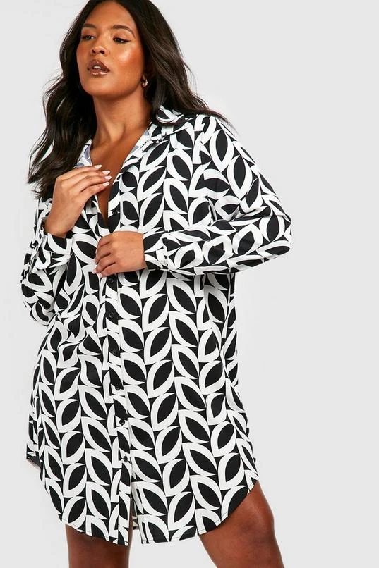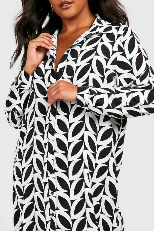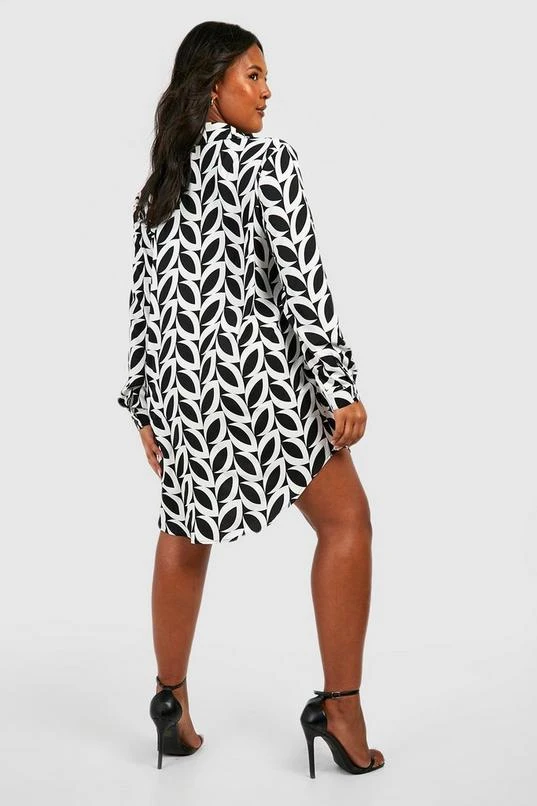 BOOHOO Plus Mono Print Shirt Dress