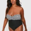 BOOHOO Plus Nautical Stripe Control Swimsuit