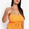 Get ready to take the plunge with this sexy piece from our women’s plus-size swimwear collection. With supportive straps and cups for the bust area and ruching to flatter the stomach, this sculpted piece is made of thick material which smoothes and defines. Carve out a cute silhouette by the pool this season with this curve-enhancing piece designed to show off all your best assets. For the best plus-size swimwear on the web, look no further.