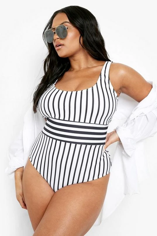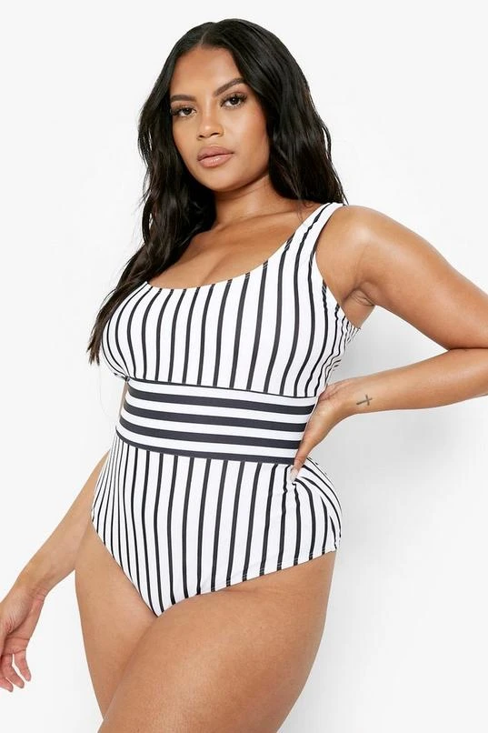 BOOHOO Plus Nautical Stripe Scoop Contrast Swimsuit