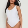 Get ready to take the plunge with this sexy piece from our women’s plus-size swimwear collection. With supportive straps and cups for the bust area and ruching to flatter the stomach, this sculpted piece is made of thick material which smoothes and defines. Carve out a cute silhouette by the pool this season with this curve-enhancing piece designed to show off all your best assets. For the best plus-size swimwear on the web, look no further.