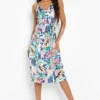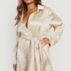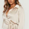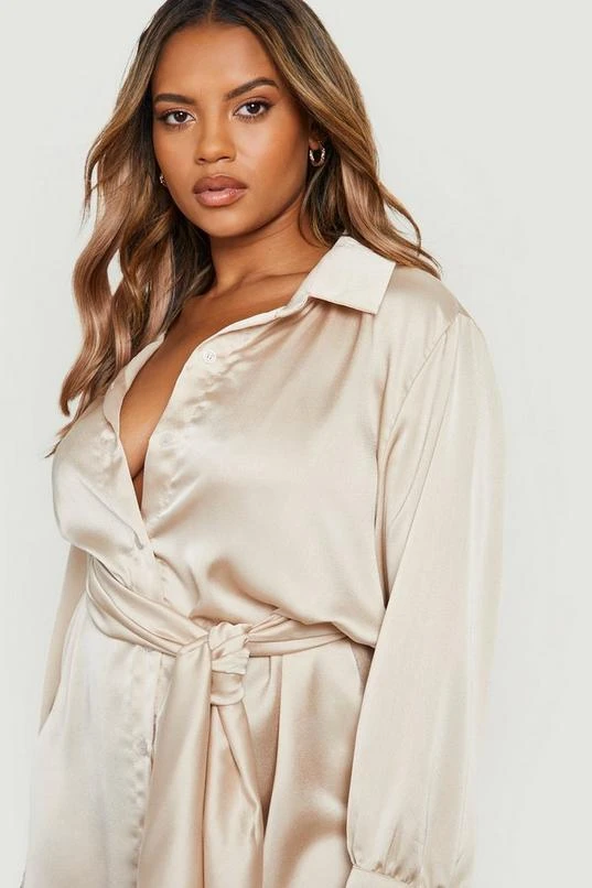BOOHOO Plus Obi Belted Satin Shirt Dress