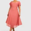 BOOHOO Plus Occasion Angel Sleeve Chiffon Midi Dress