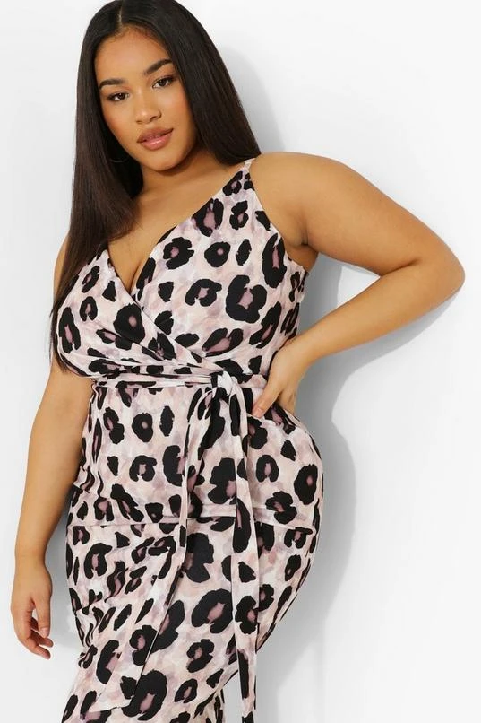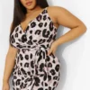 BOOHOO Plus Occasion Leopard Wrap Midi Dress
