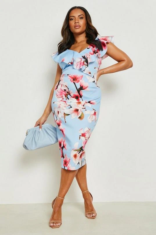 BOOHOO Plus Occasion Ruffle Floral Midi Dress