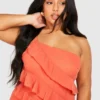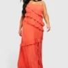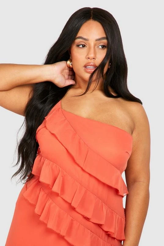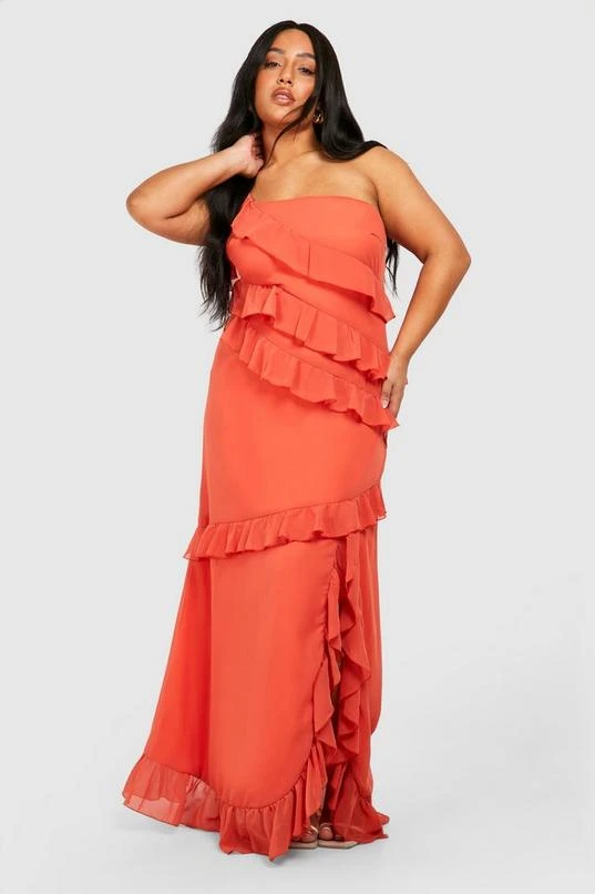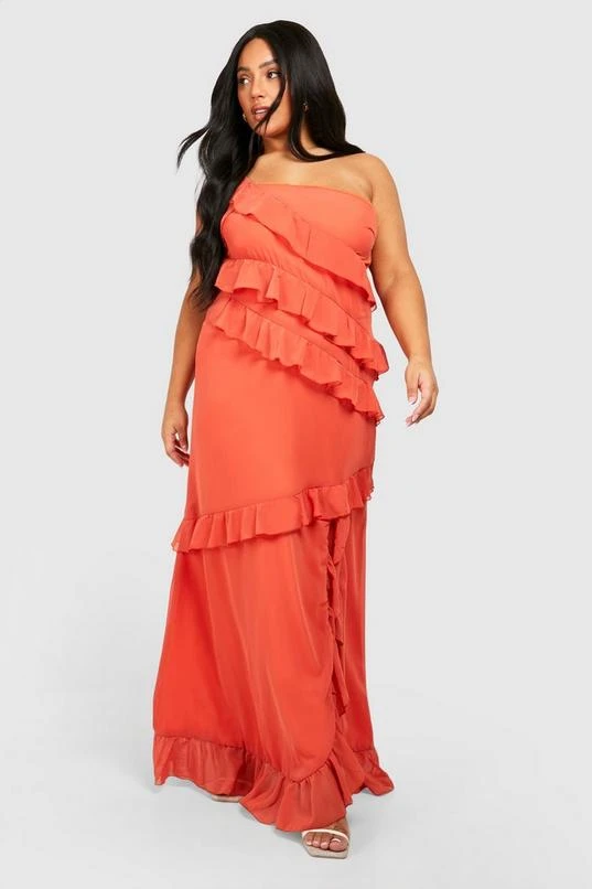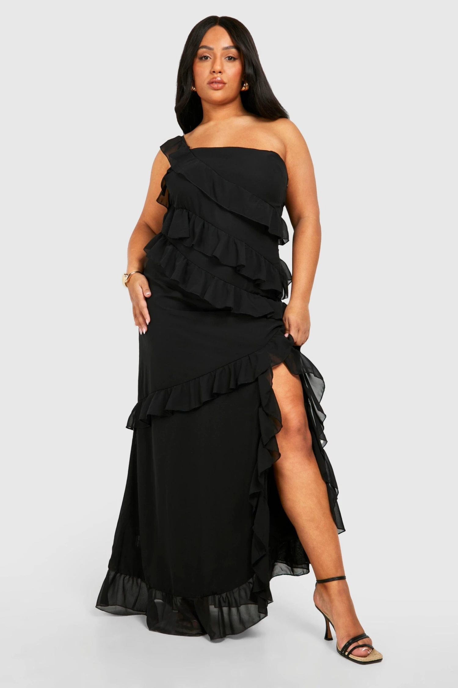 BOOHOO Plus Occasion Ruffle One Shoulder Maxi Dress