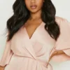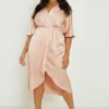 BOOHOO Plus Occasion Satin Wrap Midi Dress