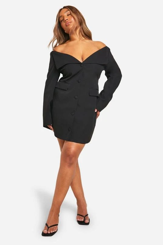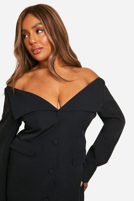 BOOHOO Plus Off The Shoulder Blazer Dress