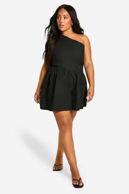 BOOHOO Plus One Shoulder Cut Out Skater Dress