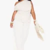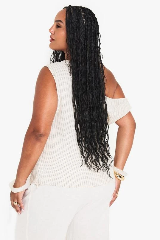 BOOHOO Plus One Shoulder Linen Stripe Top