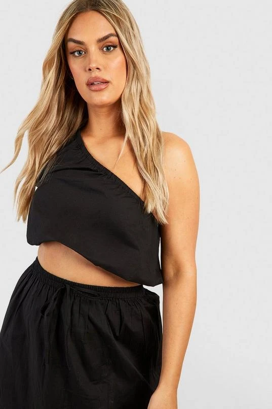 BOOHOO Plus One Shoulder Poplin Maxi Two-Piece