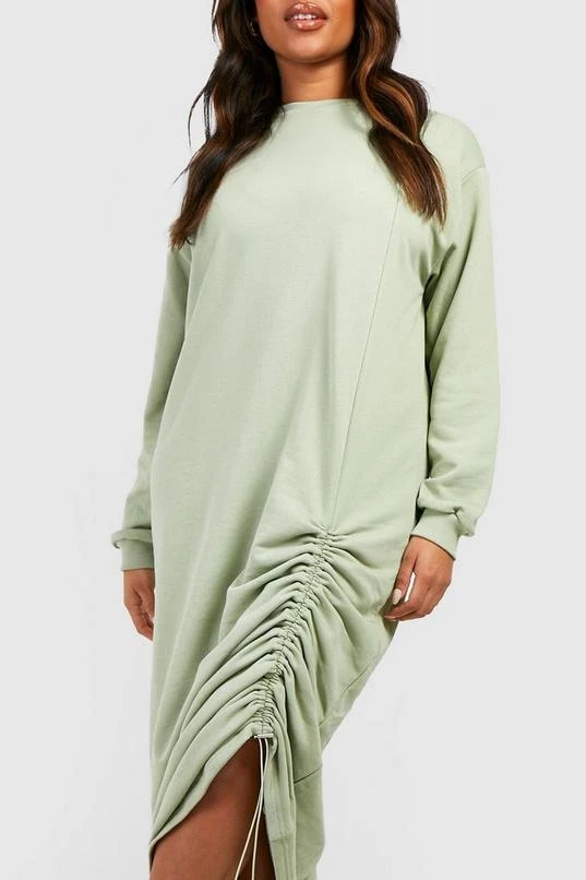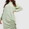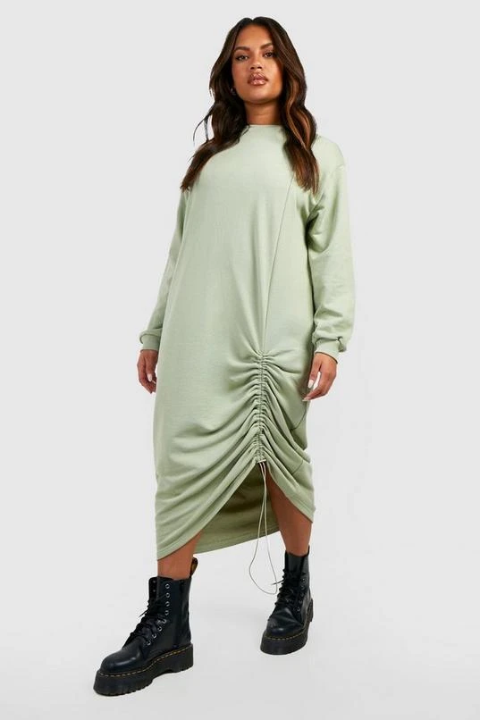 BOOHOO Plus Oversized Ruched Side Midi Sweater Dress